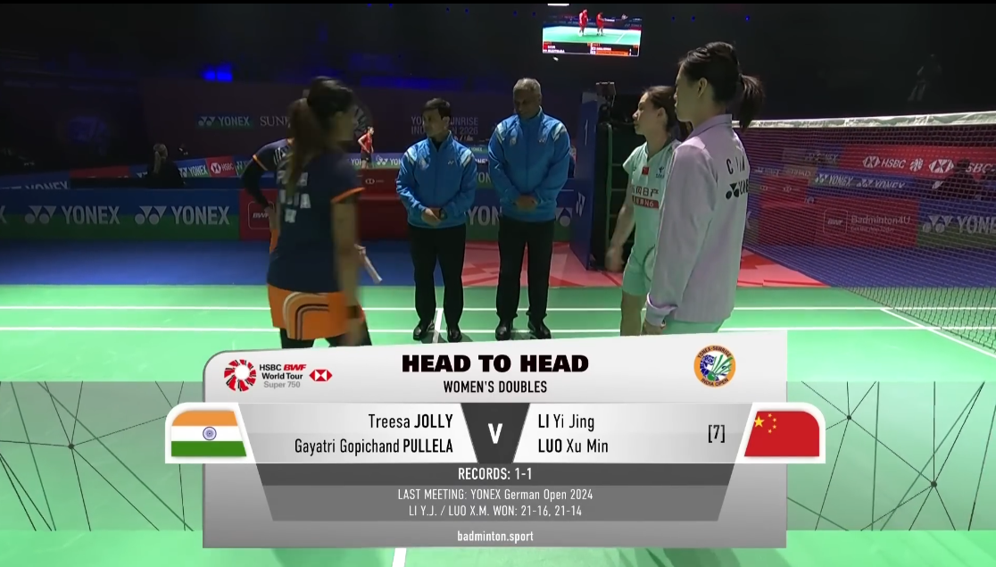 2026年 印度公开赛 R16 女双 特雷莎·乔莉&普莱勒·葛雅特莉·戈比昌德[印度] vs [中国]李怡婧&罗徐敏