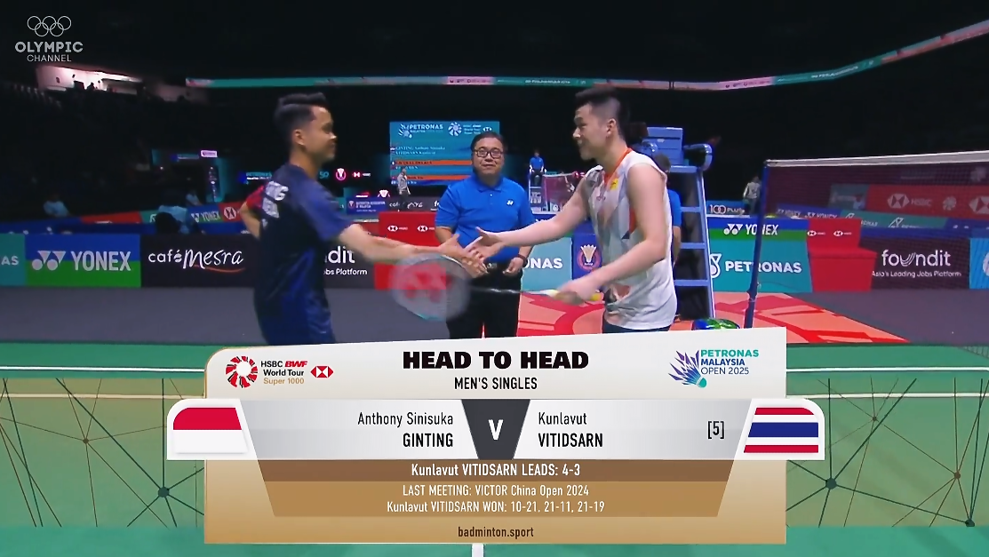 2025年 马来西亚公开赛 R16 男单 安东尼·西尼苏卡·金廷[印尼] vs [泰国]昆拉武特